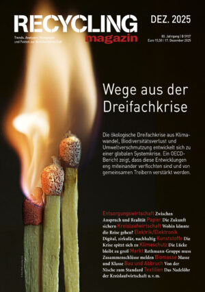 Das RECYCLING magazin berichtet seit über 75 Jahren unabhängig und aktuell über die wirtschaftlichen, politischen und technischen Entwicklungen in der Recycling- und Entsorgungswirtschaft. Ihr Maßstab ist ein qualitativ hochwertiger Journalismus mit allen Facetten einer modernen Berichterstattung. mehr
